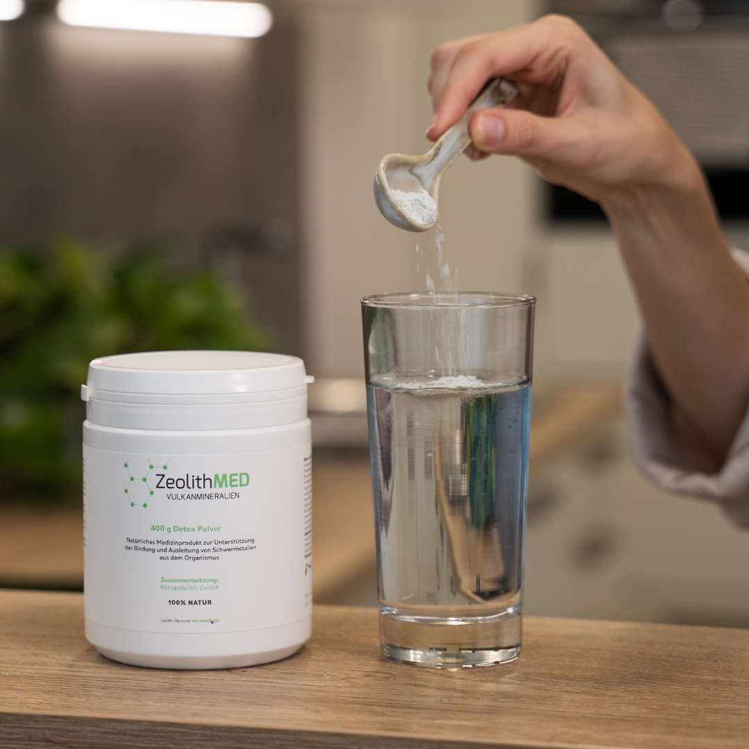 ZeolithMED, BentonitMED y ZeoBentMED son productos naturales con certificación CE elaborados a partir de minerales naturales no digeribles, zeolita clinoptilolita y bentonita montmorillonita, que fijan los contaminantes como una esponja en el tracto gastrointestinal y pueden eliminarlos del cuerpo de forma natural. Las sustancias nocivas ligadas a la zeolita y la bentonita se excretan de forma natural en las heces a través del intestino sin ejercer presión sobre el metabolismo.