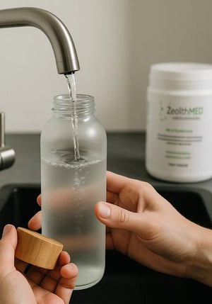 das Anrühren von Detox-Pulver in Wasser