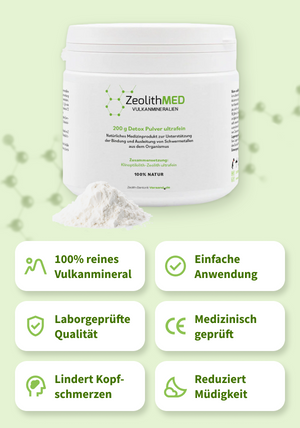 ZeolithMED – natürliches Medizinprodukt zum Einnehmen für die Entlastung des Körpers durch Bindung und Ausleitung von Schwermetallen (Blei, Quecksilber, Chrom, Cadmium, Aluminium und Nickel)
