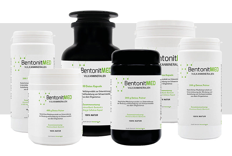 Diese Mischung aus Klinoptilolith-Zeolith und Montmorillonit-Bentonit vereint in sich die besonderen schadstoffbindenden Eigenschaften dieser beiden siliziumhaltigen Naturmineralien. Gemeinsam können diese beiden natürlichen CE-zertifizierten Medizinprodukte bei der Ausleitung schädlicher Substanzen unterstützen und so einen wertvollen Beitrag zum Schutz Ihrer Gesundheit leisten. Unsere ZeoBentMED-Produkte, die in laborgeprüfter Qualität erhältlich sind, gibt es in Form von Pulver, ultrafeinem Pulver und Kapseln. Diese Produkte werden in Dosen und Violettgläsern angeboten.